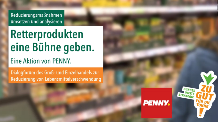 PENNY testet mit Start-ups das Angebot von sogenannten Retterprodukten in einem Berliner Markt und lässt die Maßnahme im Rahmen des Dialogforums Groß- und Einzelhandel auf ihre Nachhaltigkeit und Wirkung auf Kund:innen bewerten. Das kurze Video erläutert Hintergründe und Zielsetzung des Demonstrationsprojekts.