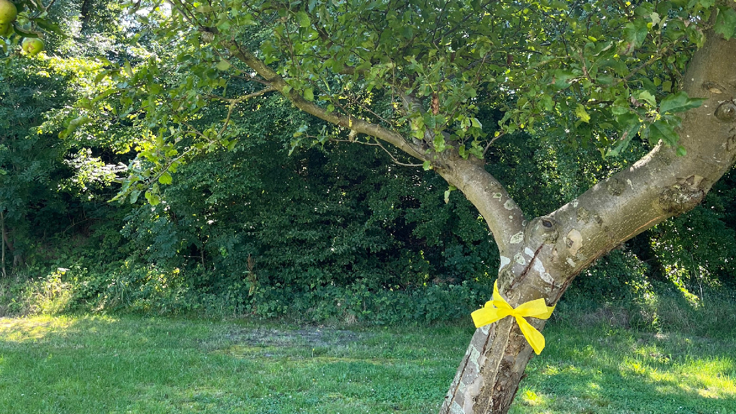 Sie dürfen in der Gemeinde Westoverledingen Obst von gemeindeeigenen Bäumen, die mit einem gelben Band markiert sind, kostenlos und ohne weitere Rücksprache ernten.